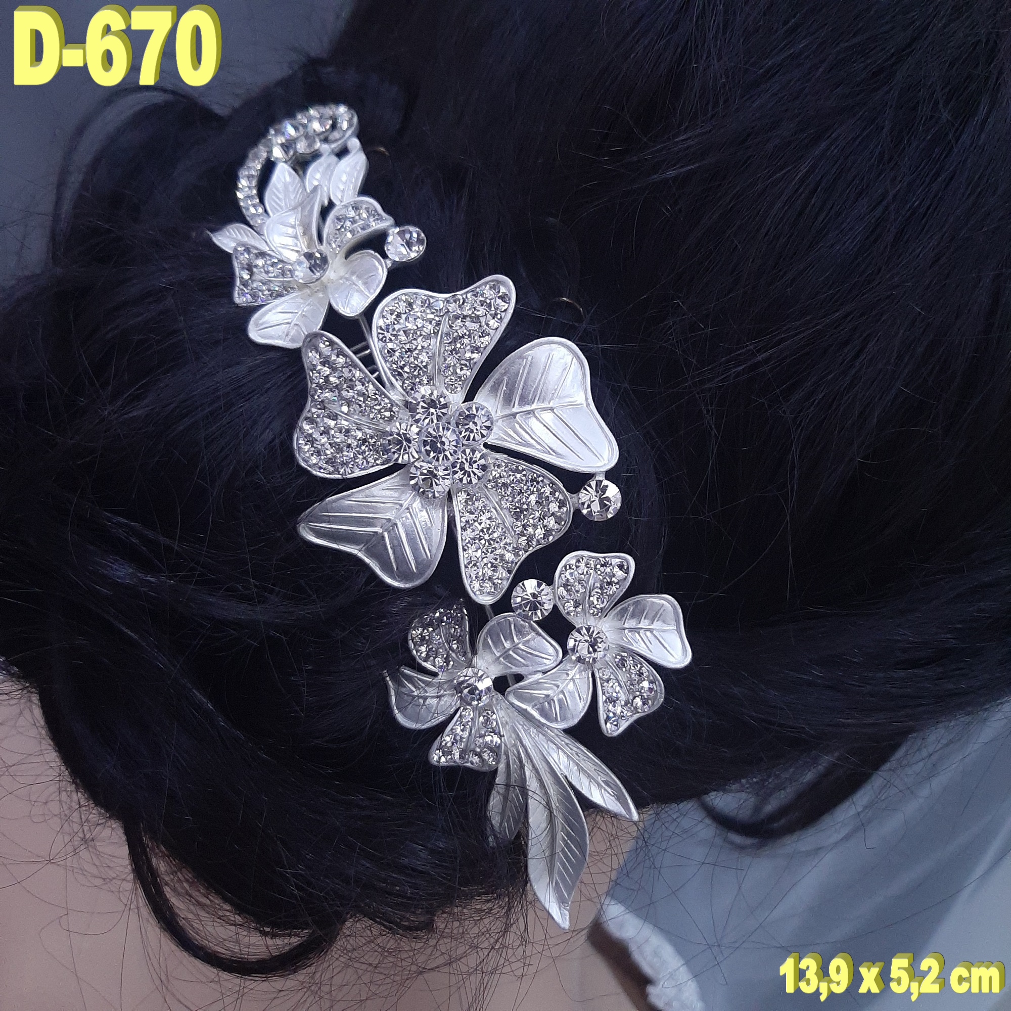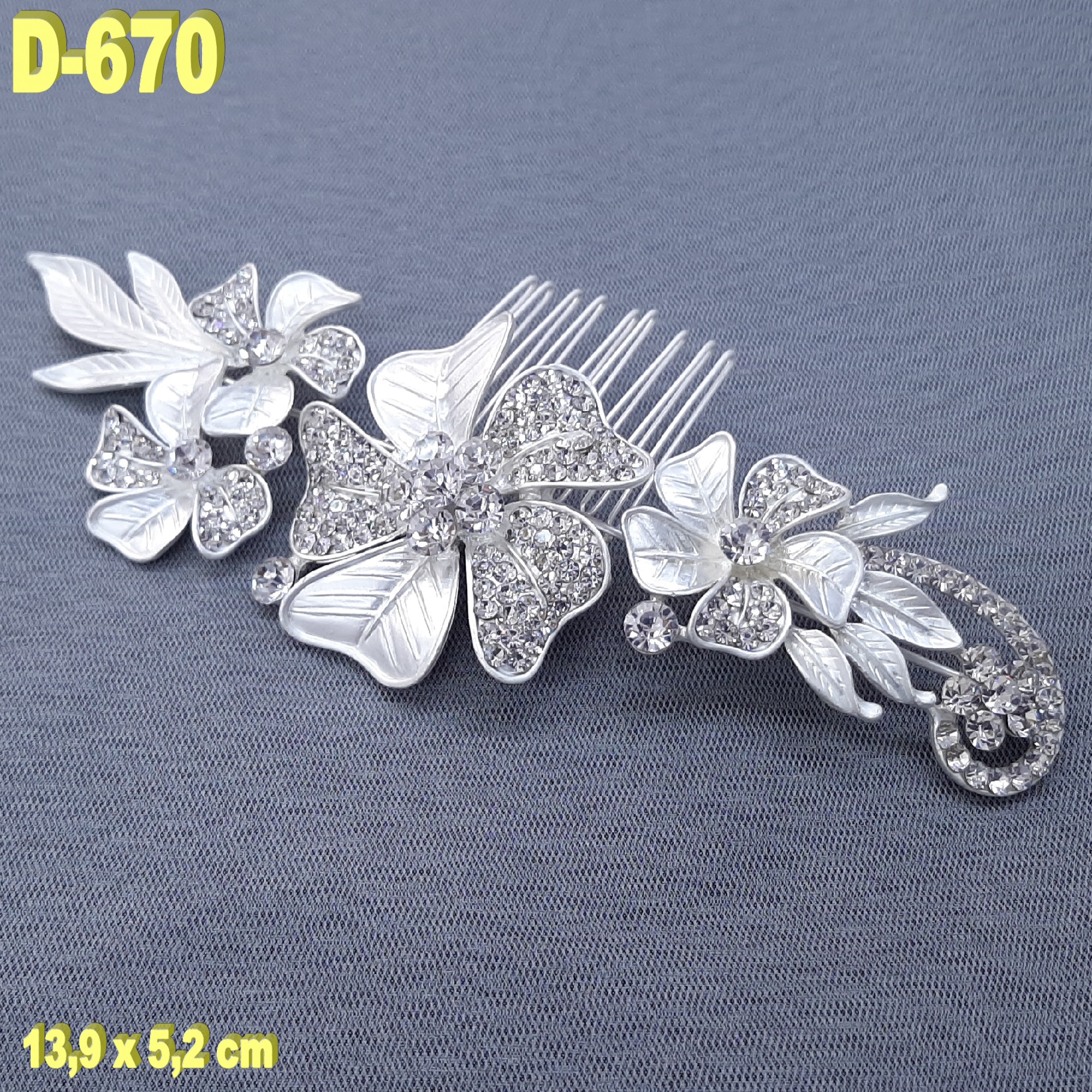Silver touched (Hair comb) with rhinestone D-670